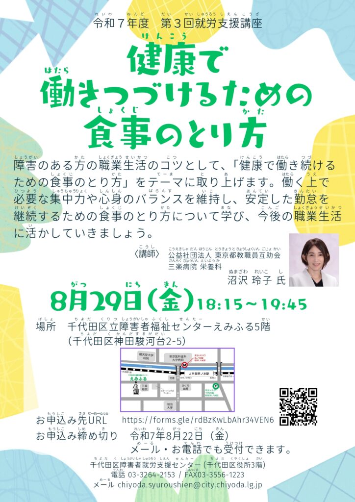 続きを読む… from 第2回、第3回就労支援講座 「障害のある方の職業生活のコツ ~健康で働き続けるための食事のとり方~」令和7年8月29日